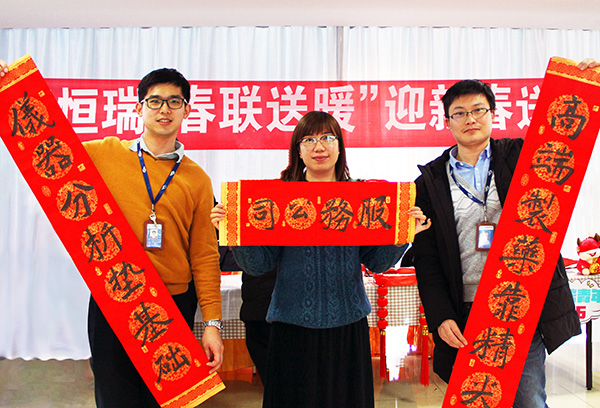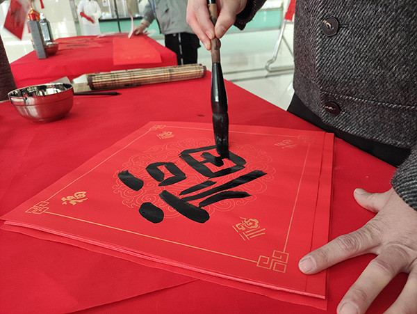 在辞旧迎新之际,公司团委在原料药厂区、制剂二厂厂区以及开发区食堂以大家喜闻乐见的方式同步营造欢度春节的氛围。书法爱好者们挥毫泼墨,将美好的祝愿化作一副副平安和谐、吉祥如意的春联和“福”字,为新年增添了浓浓的喜庆氛围,在书香墨味中共同迎接新一年的到来。