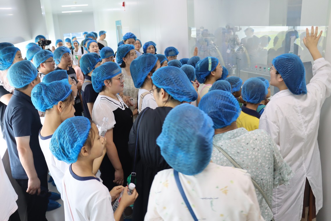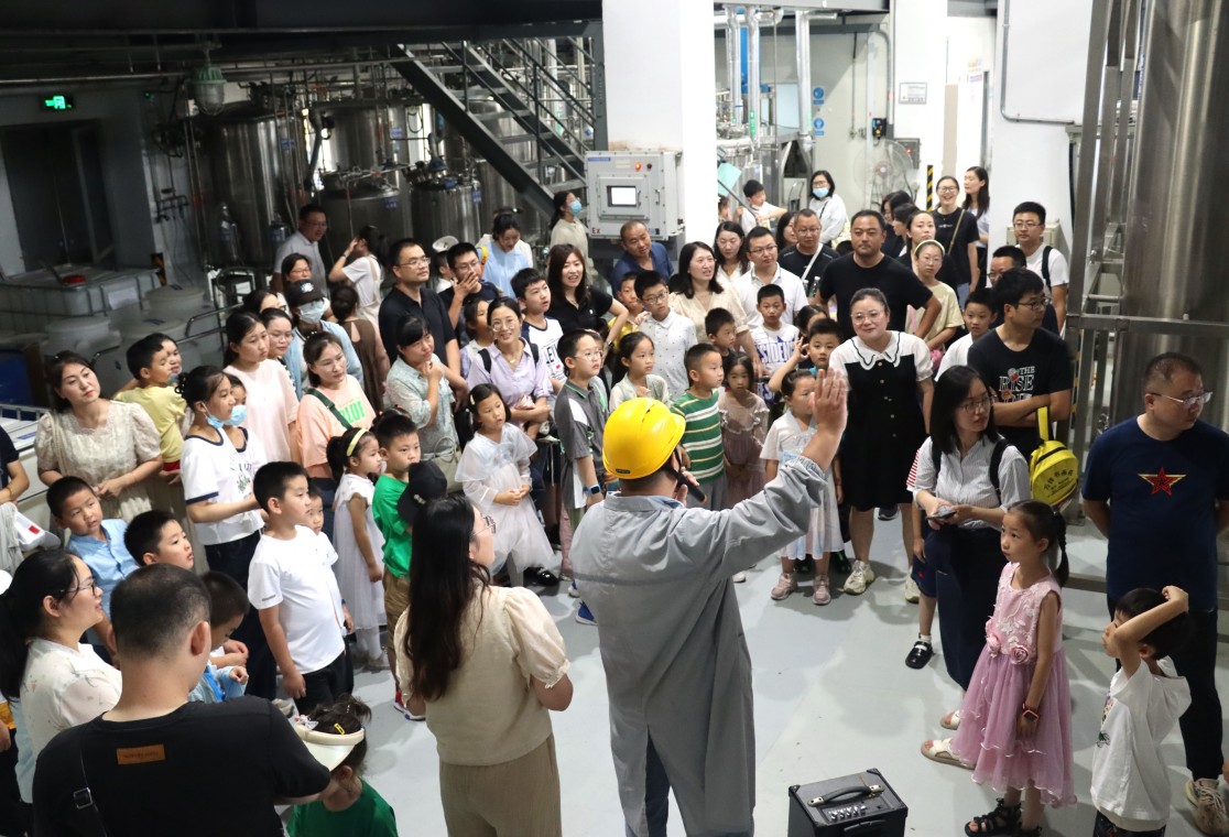 当天上午,50名优秀员工及其子女们一同探访了IM电竞医药连云港园区的生产车间、办公大楼以及企业展厅。在原料药车间的储液罐前,孩子们全神贯注地听着讲解,激起了满满的好奇心和求知欲;在制剂明亮整洁的生产车间里,小朋友们隔着护栏近距离地观看正在作业的机械臂,发出阵阵惊叹;在现代化的企业展厅,孩子们自豪于父母的IM电竞人身份,纷纷表示长大后也想成为一名IM电竞医药工作者……