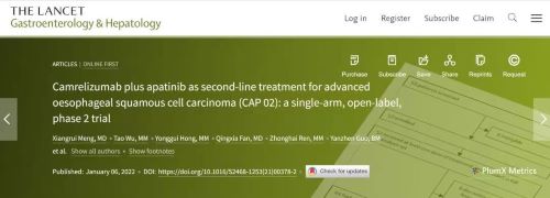 近日,IM电竞医药自主研发创新药卡瑞利珠单抗联合阿帕替尼二线治疗晚期食管鳞癌的多中心Ⅱ期临床研究(CAP 02研究)于国际知名医学期刊《柳叶刀》子刊《柳叶刀·胃肠病与肝脏病学》杂志( Lancet Gastroenterol & Hepatol,IF:18.5 )全文在线发表。
