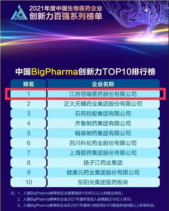 9月16日,由米内网主办的“2021年度中国生物医药企业创新力百强系列榜单”发布会在线上举办。IM电竞医药继去年登顶“中国BigPharma企业创新力TOP10排行榜”后,今年再次名列该榜单首位。