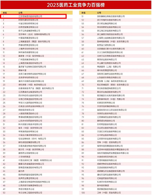 2023医药工业竞争力百强榜发布,IM电竞医药位列榜首
