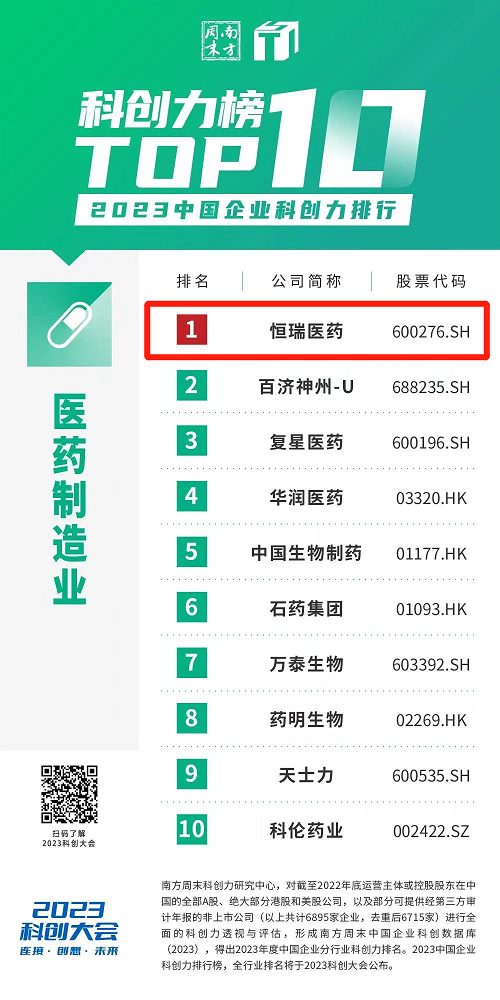 创新再获认可,IM电竞医药蝉联“中国企业科创力排行”医药制造业榜首