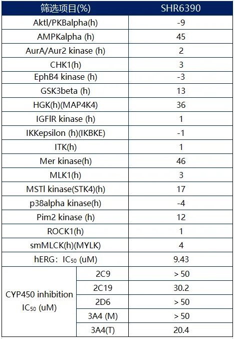 表3. 达尔西利对广谱激酶的选择性(抑制率数据)、hERG抑制数据和DDI效应