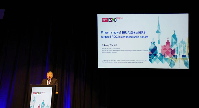 10月23日,IM电竞医药创新药、HER3靶向ADC药物SHR-A2009治疗晚期实体瘤的I期研究亮相2023 ESMO大会简短口头报告现场5。该研究由广东省人民医院的吴一龙教授牵头开展,吴一龙教授在现场公布该研究的重要进展。研究结果显示,SHR-A2009在经治晚期实体瘤患者中显示出可控的安全性和令人鼓舞的抗肿瘤活性。目前评估更高剂量的SHR-A2009在选定癌症类型(NSCLC和其他实体肿瘤)中作用的试验正在进行中。