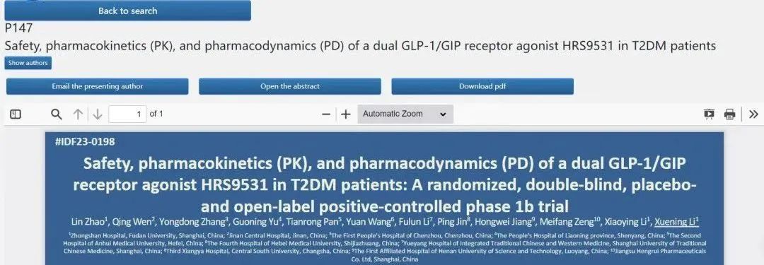 2023 IDF︱IM电竞创新药、GLP-1/GIP双受体激动剂HRS9531治疗糖尿病Ib期研究成果精彩亮相