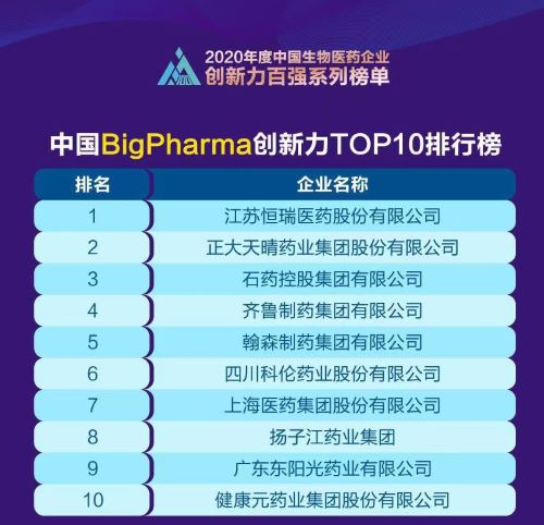 IM电竞医药登顶“中国BigPharma企业创新力TOP10排行榜”