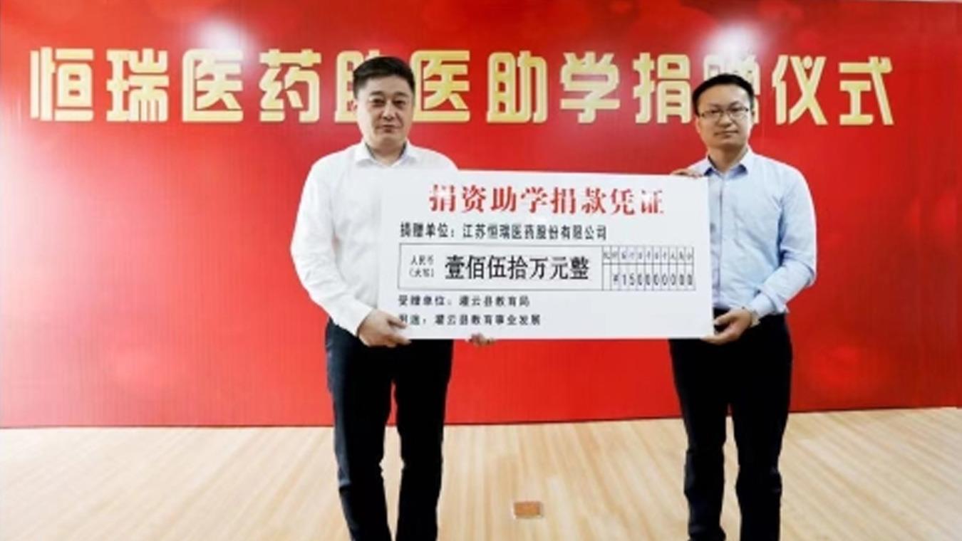 助力乡村振兴发展 IM电竞医药向连云港市灌云县捐赠助医助学基金300万元