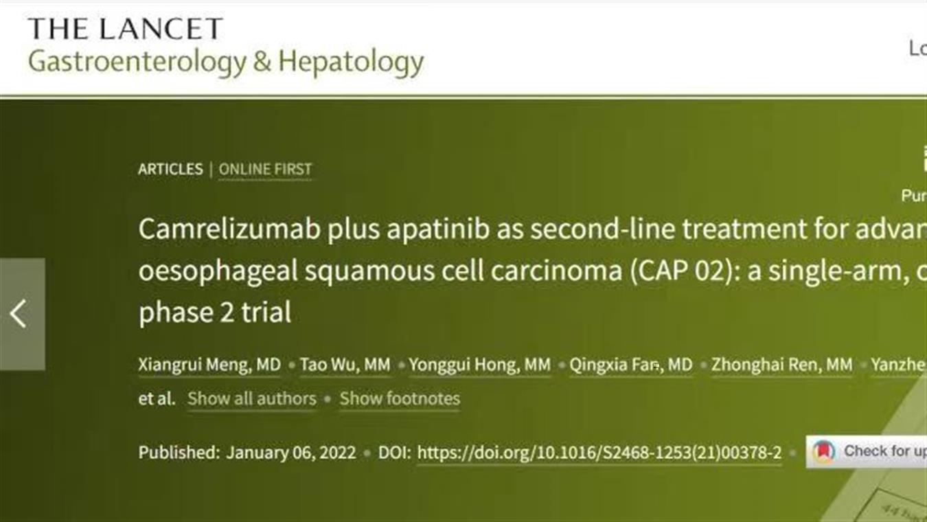 IM电竞卡瑞利珠单抗联合阿帕替尼最新研究成果荣登《柳叶刀·肿瘤》