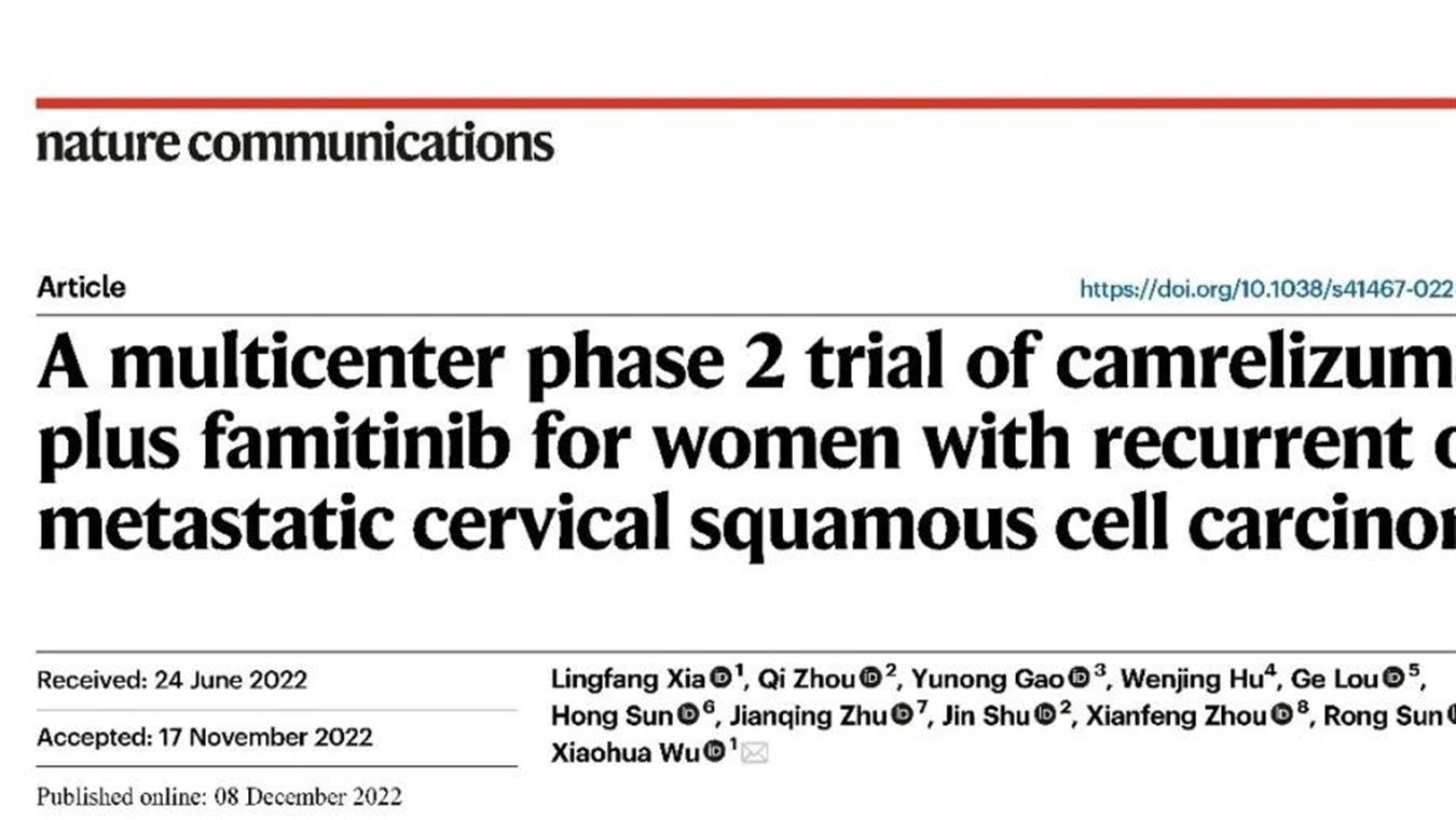 IM电竞创新药卡瑞利珠单抗联合法米替尼用于复发或转移性宫颈癌研究结果荣登JCO